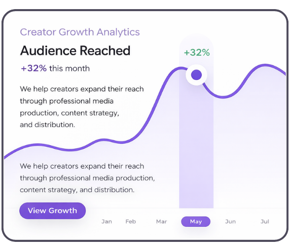 Mit jahrelanger Erfahrung in der Medienbranche unterstützen wir Unternehmen, Künstler und Marken beim Aufbau einer starken visuellen und digitalen Präsenz